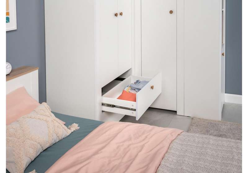 Шкафы Джастин 13.339 белый PE шагрень / дуб белый exclusive OW D4430 (86x54,8x225,8)