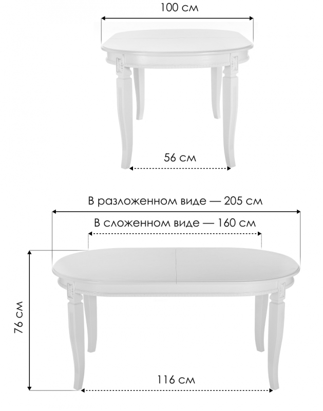 Стол деревянный Aviano 160(205)х100х76 молочный (100x76)