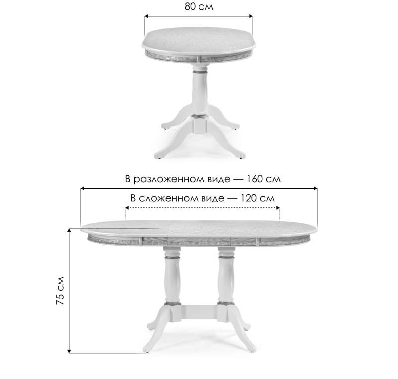 Стол деревянный Кантри 120(160)х80х75 слоновая кость с золотой патиной (80x75).