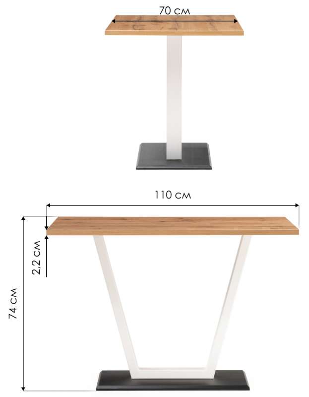 Стол деревянный Мичиган Лофт 110х70х74 25 мм дуб вотан / белый матовый (70x74).