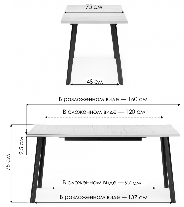 Стол деревянный Колон Лофт 120(160)х75 дуб крафт золотой / белый матовый (75x75)