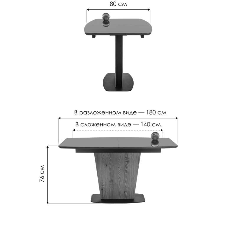 Длина стола в разложенном виде: 180 см.