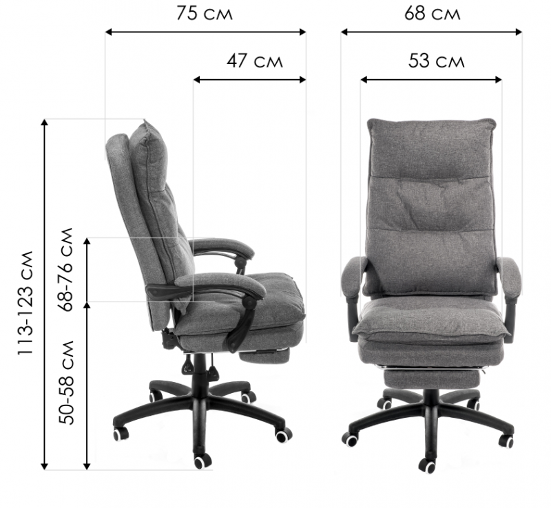 Глубина кресла с выдвинутой подставкой для ног - 107 см.