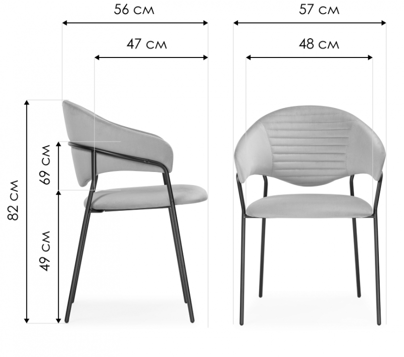 Стул на металлокаркасе Рансол дымчатый / черный глянец (57x56x82).